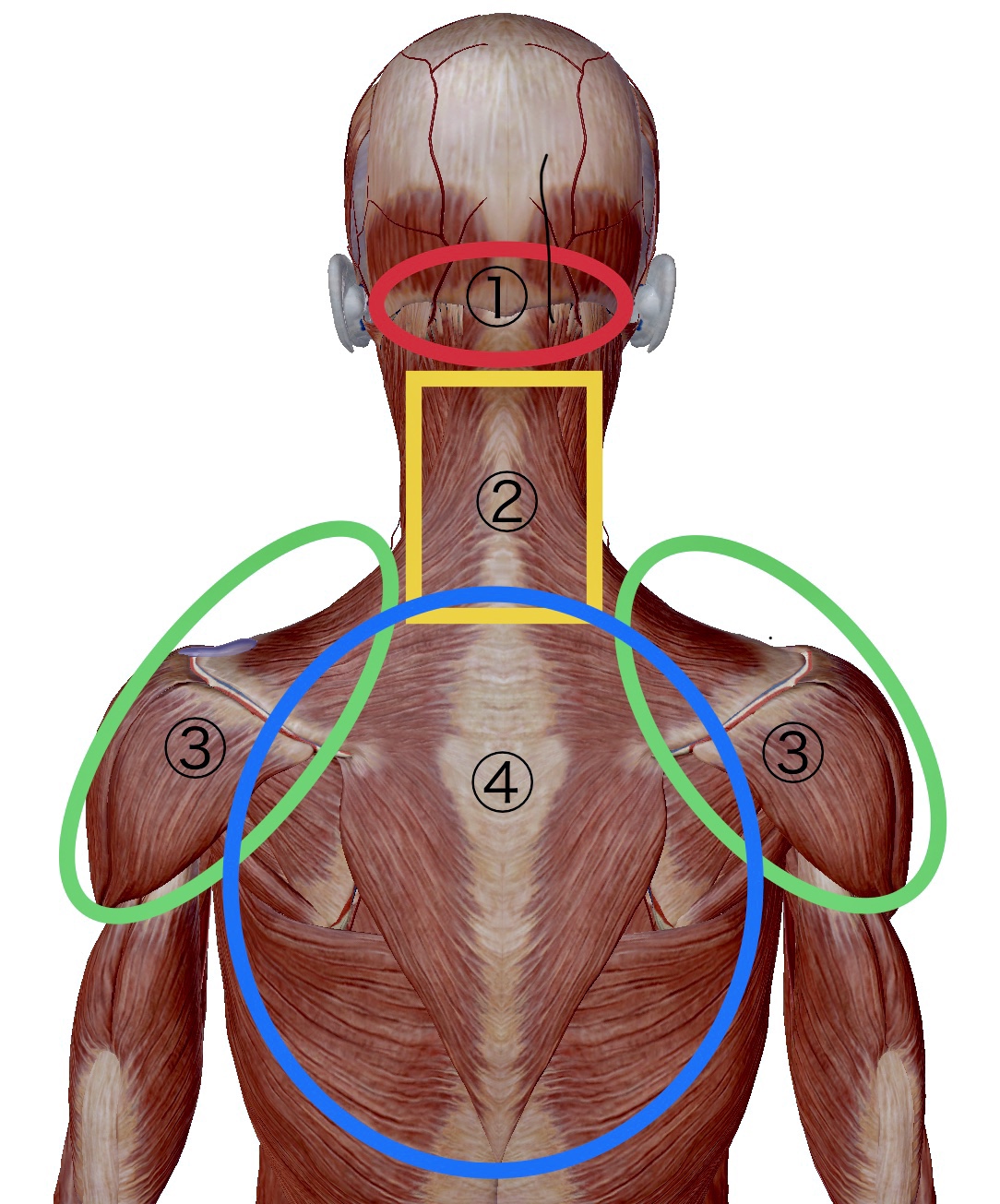 人それぞれの肩のコリ型があるのです。さらに1から4の症状が合わさっています。